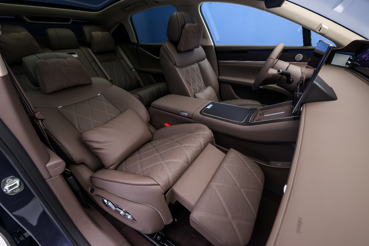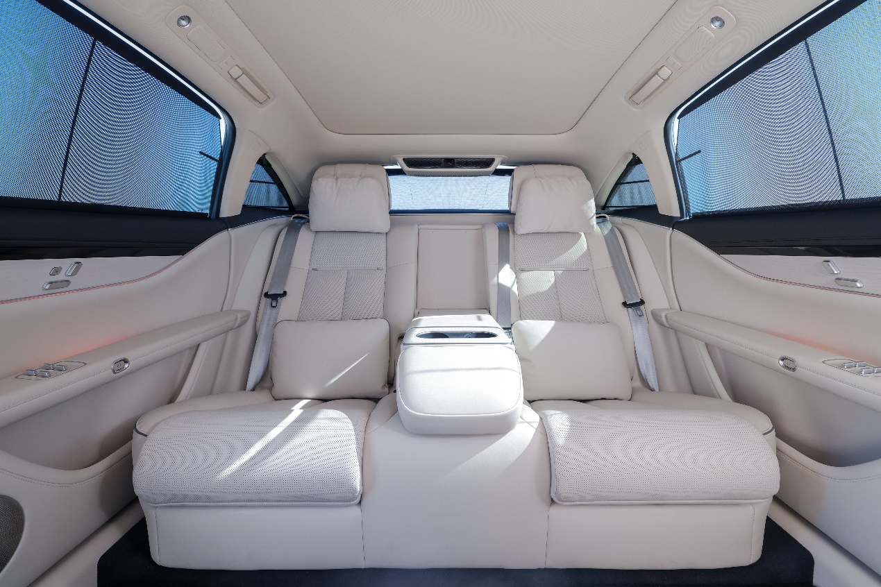并且,新车还有着满级隐私与防晒,全车共配了8块防晒玻璃、7处隐私遮阳帘、后排及后风挡均采用隐私玻璃,不但满足了高端用户保护隐私的需求,同时让用户穿梭城市,或自驾户外,再也无需为防晒担心。而9块双层夹胶隔音玻璃加上出色的NVH性能铺陈,带来的栈静音设计,更完完全全是百万级静谧私享体验。从静态品鉴的体验来看,新款享界S9的座舱静音表现,已然看齐了尊界S800。