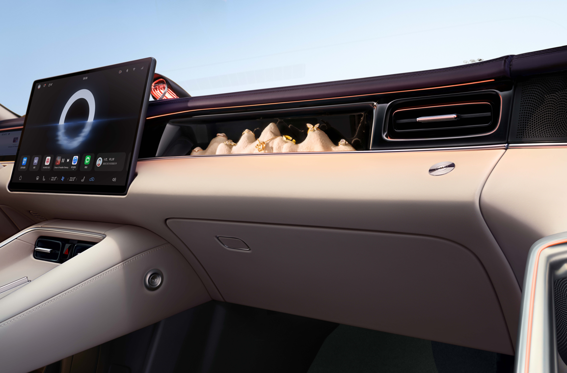 尚界Z7&Z7T首创灵感橱窗,彻底打破传统副驾储物空间只注重功能性的局限,不仅可容纳手办、模型等年轻用户喜欢的物品,通过场景化设计将座舱打造成充满仪式感的专属空间,以人文温度重新定义座舱价值。尚界将年轻用户的热爱融入座舱设计,让每一次出行都能邂逅美好。