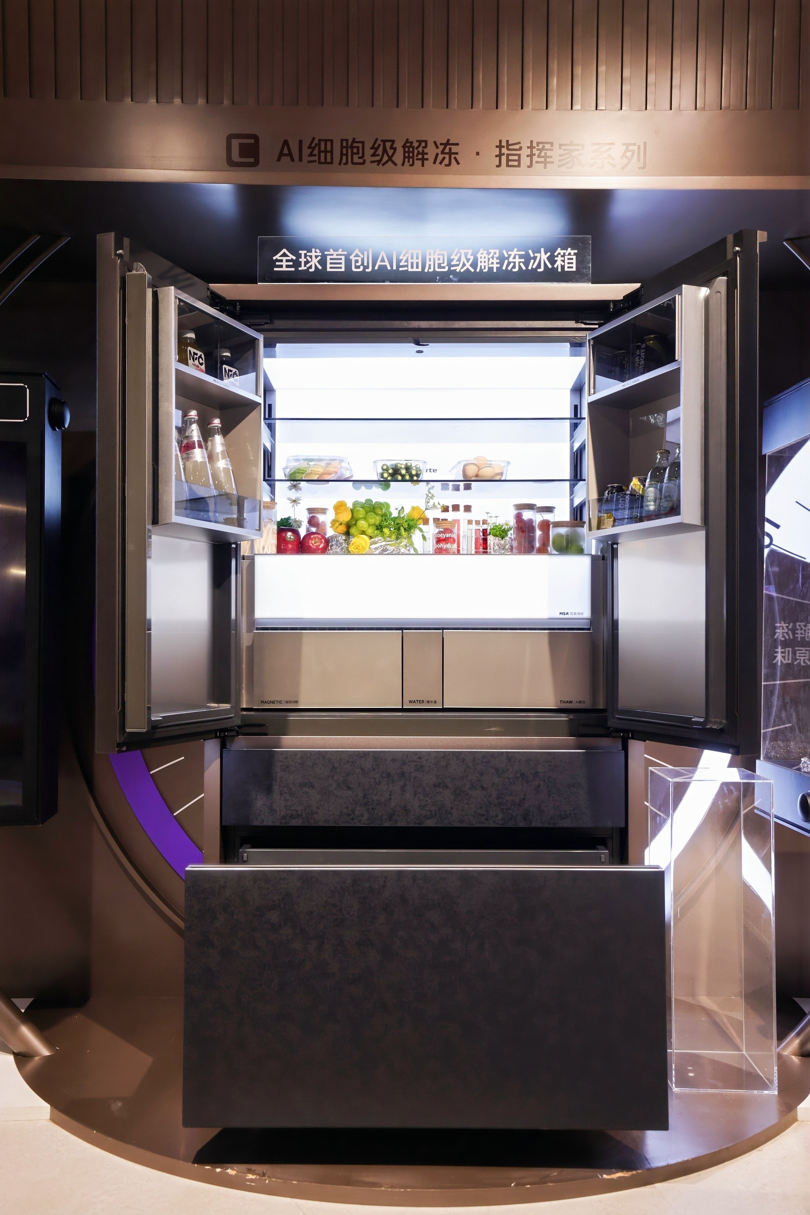 对于“发明品类”的热情,也被卡萨帝带入了保鲜赛道。先是在2015年,卡萨帝首创气悬浮无油动力科技,引领行业进入细胞级养鲜时代。两年后,卡萨帝又原创MSA控氧保鲜科技,后升级为MSA®氮氧智控保鲜科技,成功开创细胞级养鲜冰箱的全新品类。在AWE2026上,卡萨帝冰箱以全球首创AI细胞级解冻科技补齐了“保鲜链”的最后一环,也再次为高端冰箱的未来进阶划定了全新的深耕赛道。