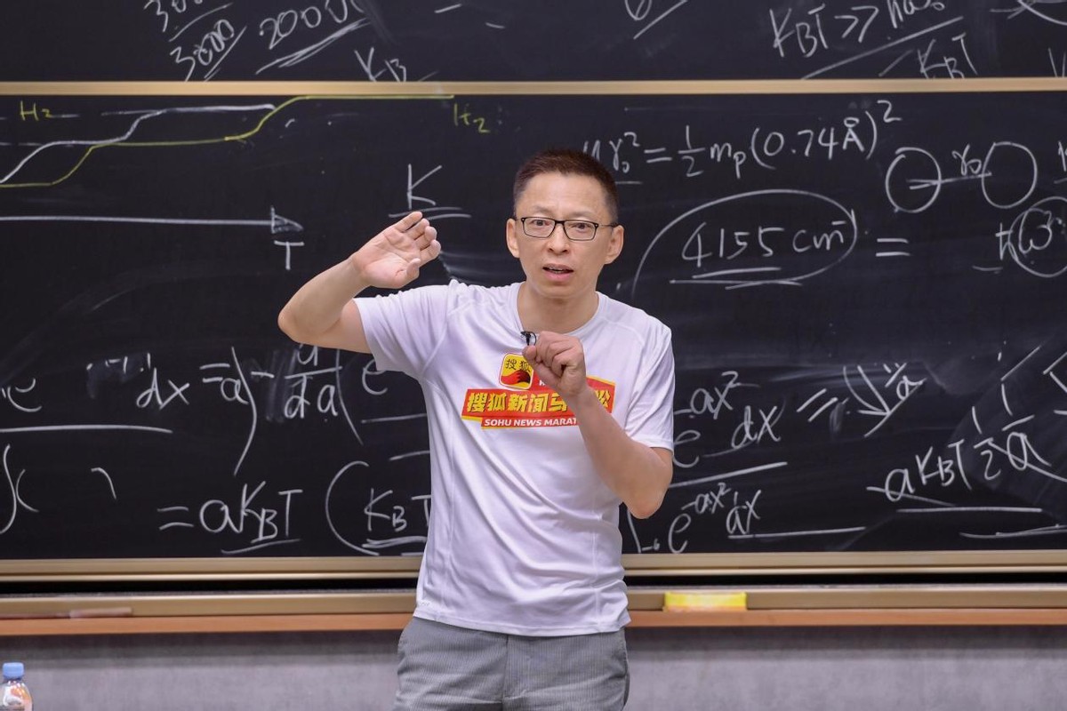 在本次线下课中,张朝阳将电子与原子核的运动分开处理,电子对原子核的作用则以等效