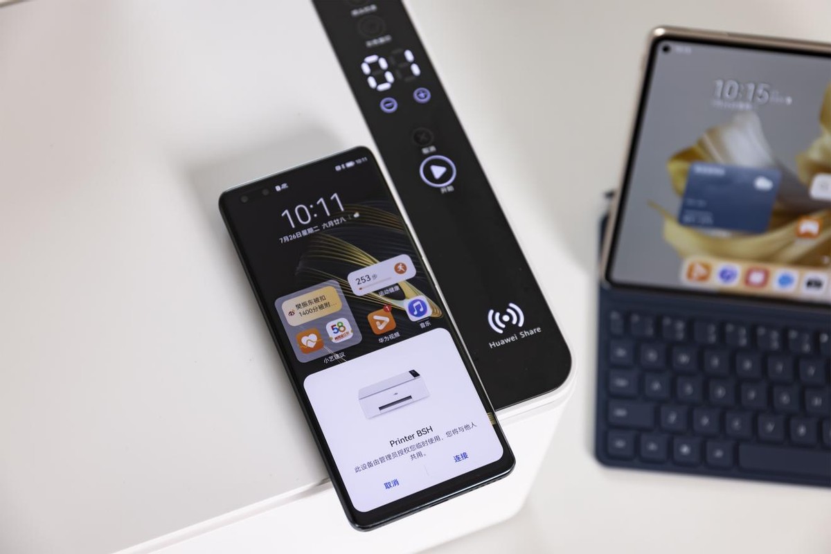 得益于HarmonyOS 3的全新赋能,华为PixLab V1打印机加入了超级终端,拥有了前所未有的智慧打印能力,消费者不需要再考虑相册、文档、浏览器或者其他应用的打印入口在哪里,而是在手机/平板的超级终端界面一拉即合打印机,即可出现一个统一的打印入口,开启超级打印模式,任何需要打印的内容只需要点击屏幕上的悬浮球,就可以快速发起打印。华为打印机注册到云端后,用户还可以便捷地远程打印。对于普通用户而言,打印机的学习成本大大降低。
