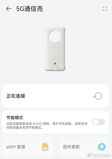 还有,5G 通信壳是利用壳子的 eSIM 与手机的 SIM 卡,两者信号融合形成 5G 信号。