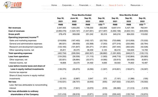 图源:斗鱼2022第三季度财报