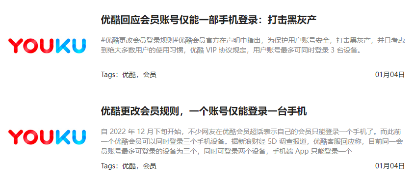 比如优酷上一周就进一步收缩了VIP权限,一个账号仅能登录一台手机。