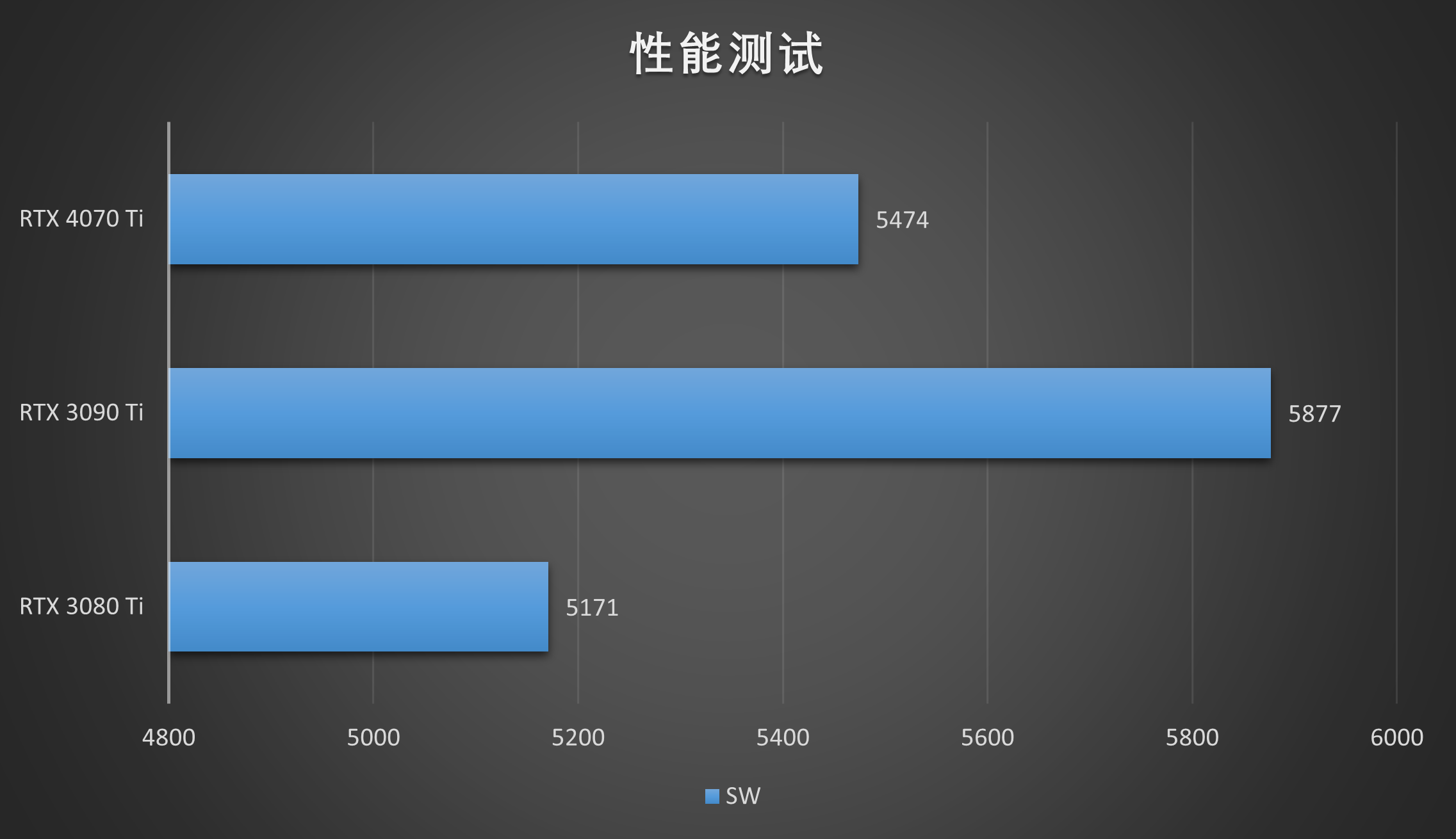我们照例先进行一次理论性能测试,在3DMark的DLSS功能测试中,万丽GeForce RTX 4070 Ti Gallardo在开启DLSS 2的情况下就已经能够实现2K@151帧的游戏体验了;如果开启DLSS 3的话,即便在4K画质下,也依然能够拥有115帧的稳定流畅帧数。