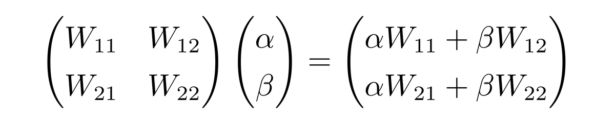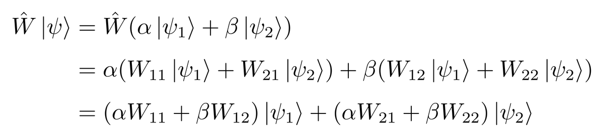 其中各个W_{ij} (i,j=1,2)是线性组合的系数。因此,对于一般的态,有