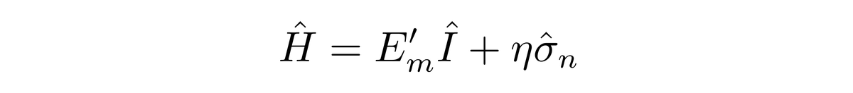 其中n表示(θ,ϕ)方向。上面两式表明,选取适当的方向n,二能级系统的哈密顿算符可以表示成恒等算符与σ_n的线性组合。于是,二能级系统的演化问题在除了一个总的能量偏移之外,可以等价成自旋系统在磁场中的演化问题。