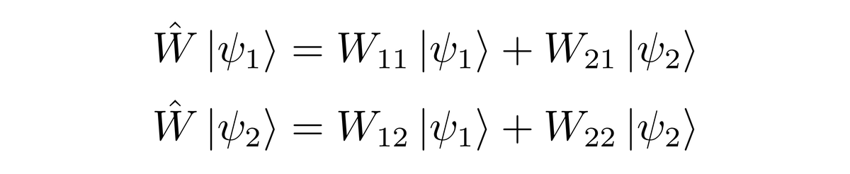 由此可以得到W在基矢|ψ1〉、|ψ2〉下的矩阵形式为
