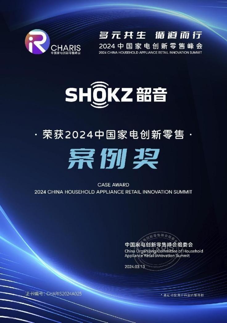 近日,全球家电及消费电子行业的顶流科技盛会,2024年中国家电及消费电子博览会(AWE2024)在上海新国际博览中心开幕。作为2023年开放式耳机和运动耳机全球销量第一(沙利文最新公开报告数据)的专业运动耳机品牌,Shokz韶音今年携其新一代游泳耳机再度惊喜亮相AWE,并在同期举办的2024中国家电创新零售峰会上,一举拿下案例大奖。