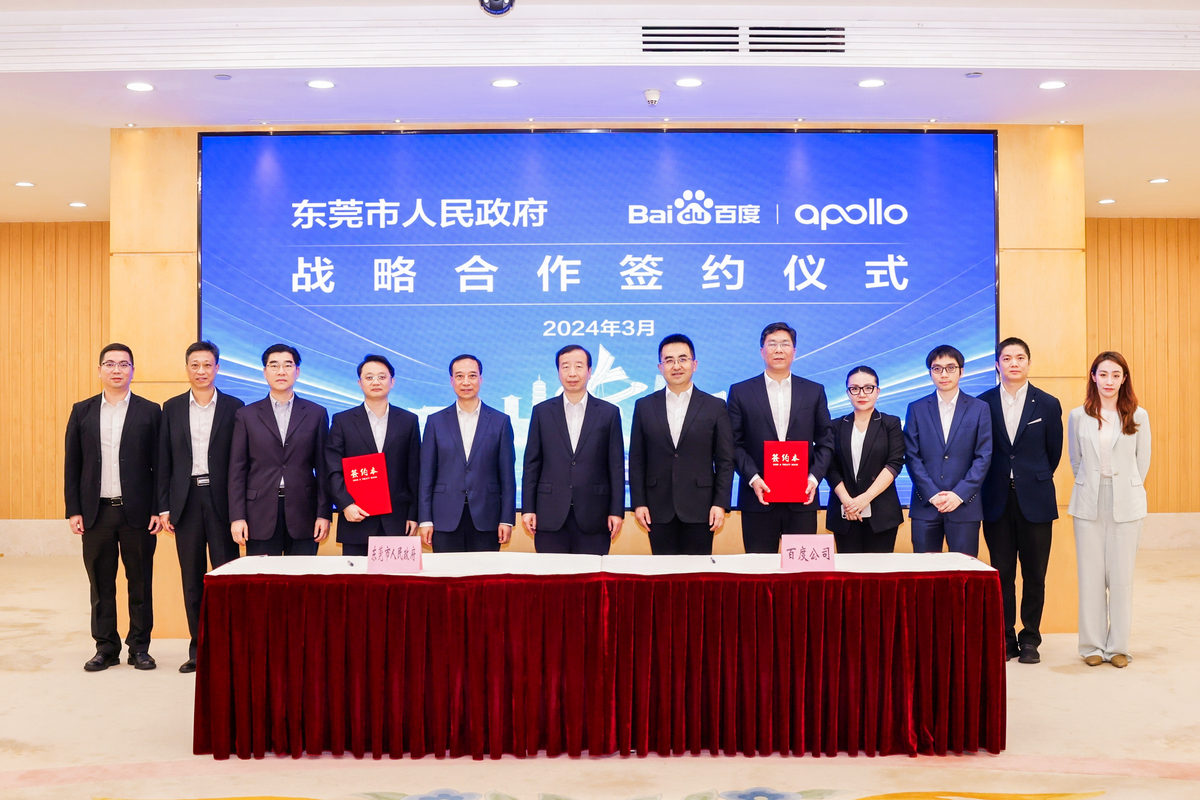 3月22日,东莞市人民政府与百度签署战略合作协议,双方将紧密围绕人工智能产业发展,充分发挥百度在 AI 算法、云计算、大数据、自动驾驶技术等方面的优势,推动人工智能的全场景应用落地。百度将在东莞市委市政府的指导下,依法依规、稳步有序的开展业务,积极落实战略合作意向,持续发挥在人工智能、自动驾驶、智能交通等方面的优势技术。