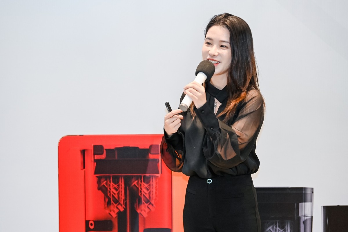 随后,Formlabs大中华区市场负责人柯霖女士为在场的媒体和嘉宾对Formlabs的品牌理念和发展历程进行了深度解读,表达了Formlabs致力于推动数字制造的普及,实现“随心所造”的使命,共同推动3D打印技术从原型开发推向全面制造的愿景。另外,柯霖女士还介绍Formlabs发展并在全球拥有超200多家经销商和合作伙伴,至今助力诸多企业进行产品研发设计和批量生产,终端客户如:迪士尼、谷歌、索尼、宝马、Nike、大疆和华为等。