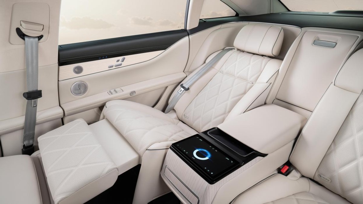 享界S9,该车型在业内首次推出了轿车后排零重力座椅,12向电动调节设计,包括2向电动头枕调节和4向电动腿托调节,无论是坐姿还是卧姿,都能让乘客感受到舒心与惬意。在全面舒展的姿态下,腰部角度最大可达108°,膝盖角度最大可达128°,配合429mm的超宽腿托设计,充分满足了人体放松的需求。此外,座椅还标配了加热、通风和按摩功能,无论春夏秋冬,都能让乘客随时享受到极致的舒适。除了零重力座椅,享界S9还首发了车规级投影系统,配备了业界领先亮度、色域的车规级投影仪和32英寸升降式投影幕布,为用户复刻了影院级的观影体验。