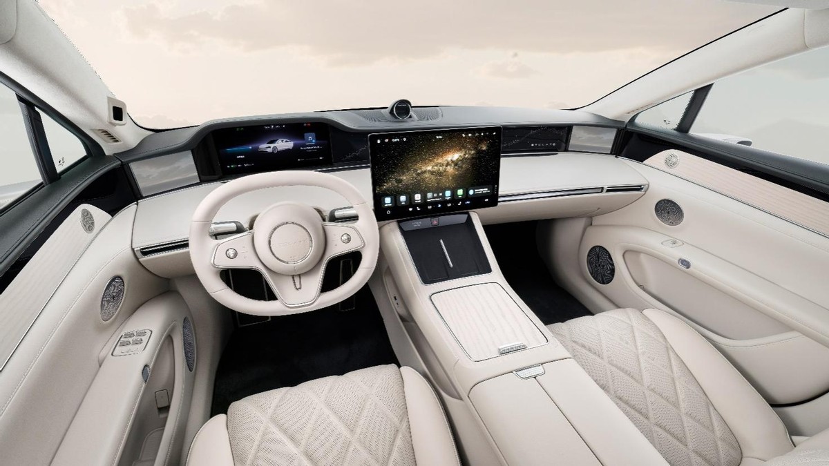 在内饰方面,享界S9秉承鸿蒙智行“正、纯、雅、悦”的智慧座舱设计理念,打造了全新的寰宇座舱。1680万全色域流水氛围灯、顶级Nappa真皮等奢华配置,为乘客带来了极致的舒适与尊享体验。