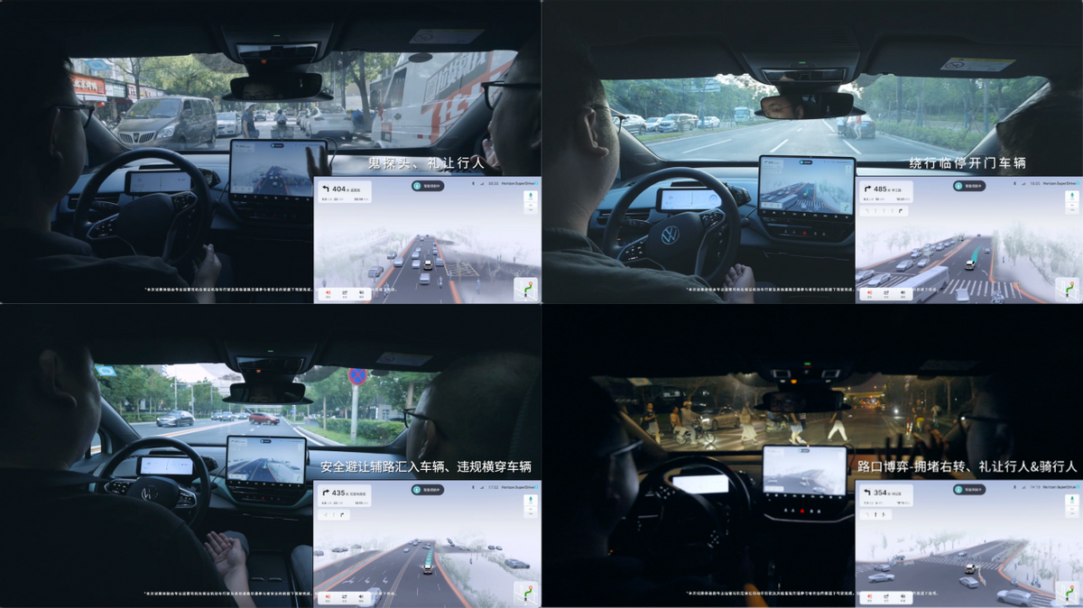 有了顶级技术的创新,地平线聚焦拟人化体验突破,以面向量产的端到端World Model以及基于数据驱动的交互博弈算法,使其全场景智能驾驶解决方案Horizon SuperDrive™(简称HSD™️)实现在任何道路环境下都能兼顾场景通过率、通行效率和行为拟人。从近期发布的HSD一镜到底视频中可以看出,地平线HSD在不同城市路况、多种复杂场景下均能实现全程零接管的顺滑拟人体验,展现出了极强的感知推理能力和通过能力。同时,HSD在HMI构建世界的数字镜像更精准、清晰地重建物理世界,提供流畅、统一的交互体验,极大增强了用户的心理安全感,为行业做出“好用”城区NOA新标杆。