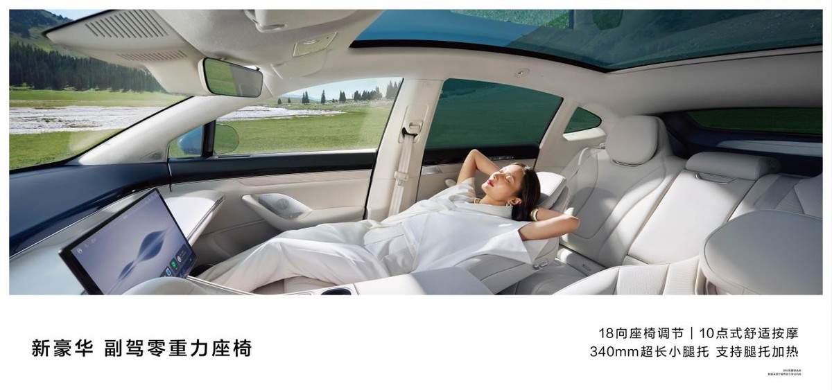 而有了大空间做根基,智界R7的座舱配置相当丰富,副驾配备了行业最舒适、配置最高的零重力座椅,支持一键悬浮;双层隔音夹胶安全玻璃打造的2.1平米全景大天幕,搭配业界最大的电动遮阳帘,营造通透宽裕的空间感的同时,无需担心车内的过热以及防晒问题。参考刚刚上市的享界S9的内饰来看,智界R7的车内配置或也将十分奢华。