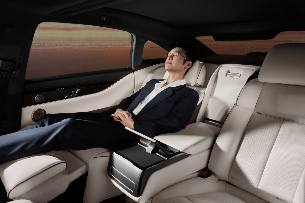 而在最重要的座椅配置上,享界 S9搭载业界首发轿车后排零重力座椅,能更好地满足用户对高端舒适度的追求。并且,后排座椅还配备专属秘书屏,躺在座椅上,也能够轻松操控,对前后排座椅、空调、操控投影巨幕等进行调整。此外,享界 S9不仅有首发车规级投影系统,而还搭载全新的HUAWEI SOUND® SUPERIOR,能带来真正的剧院级视觉与听觉体验。