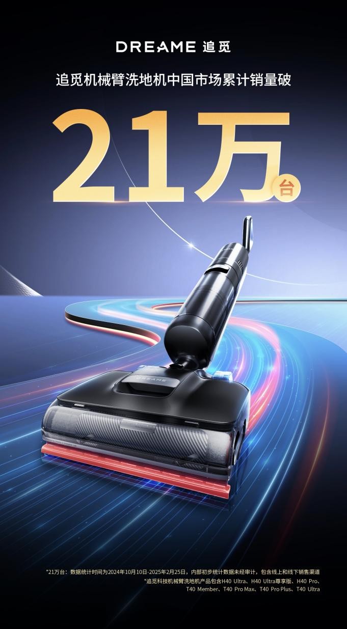 上市半年以来,追觅搭载机械臂技术的洗地机产品凭借其卓越的性能和创新的技术,迅速赢得了中国消费者的青睐。据统计,追觅机械臂技术洗地机产品在中国市场累计售卖已超21万台,这一数字不仅彰显了消费者对追觅品牌的信任与支持,也充分证明了追觅机械臂洗地机在市场上的强劲竞争力。