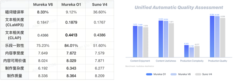 图 | Mureka 01在文本生成音乐的客观测评中得分