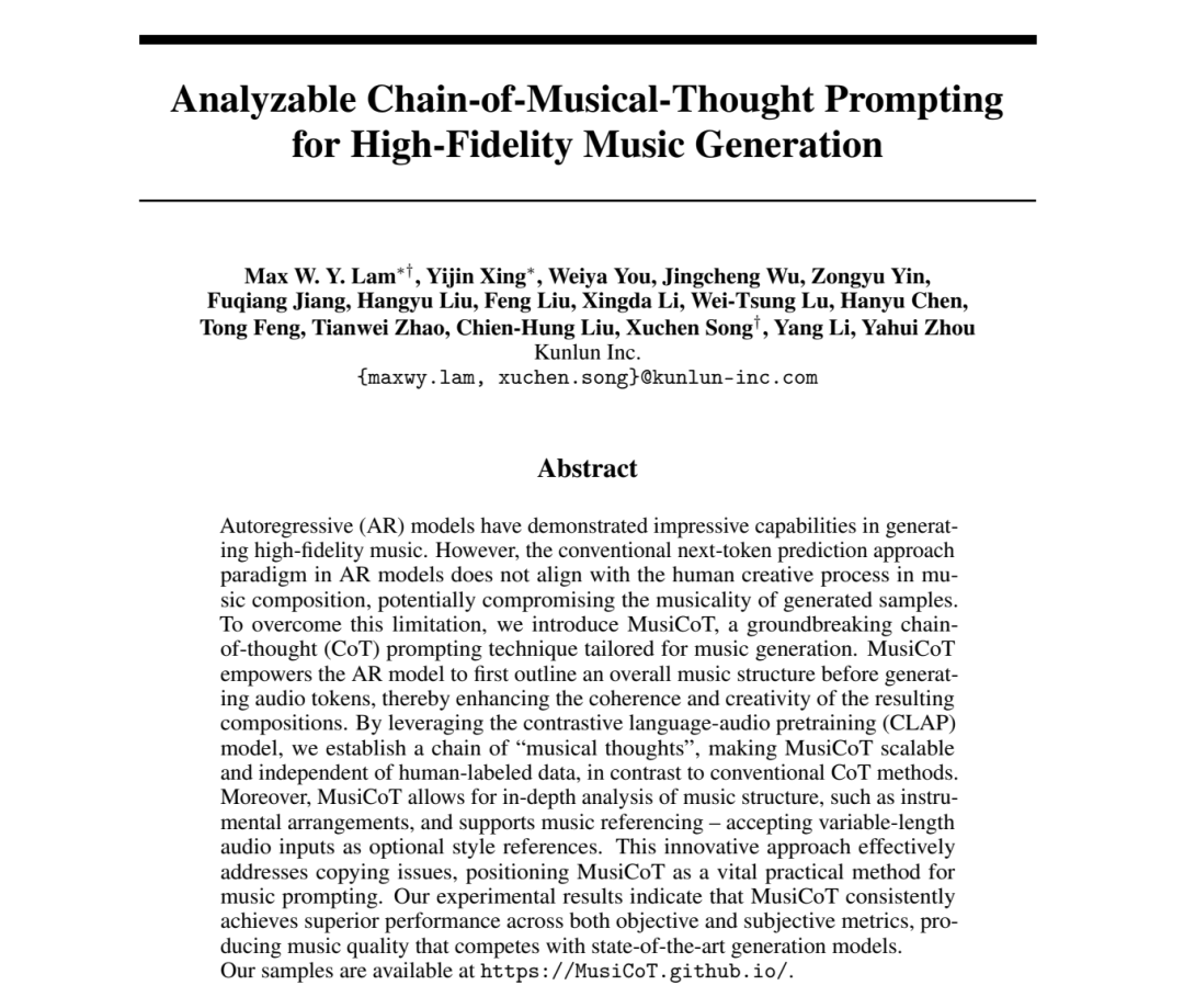 图 | Mureka自研基于MusiCoT的自回归模型音乐生成技术(来源:MusiCoT.github.io)