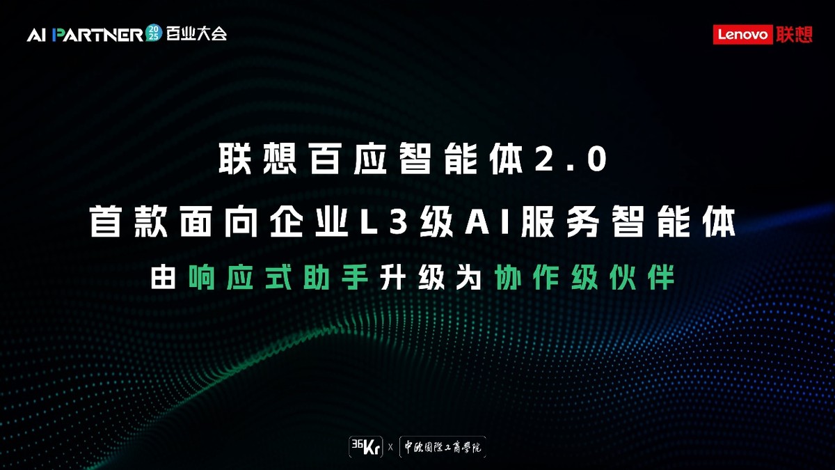 8月27日,在36氪主办的“AI Partner百业大会”上,联想中国区中小企业方案服务事业部总经理魏东正式发布百应智能体2.0版本,标志着国内首个面向企业的L3级AI服务智能体正式落地。