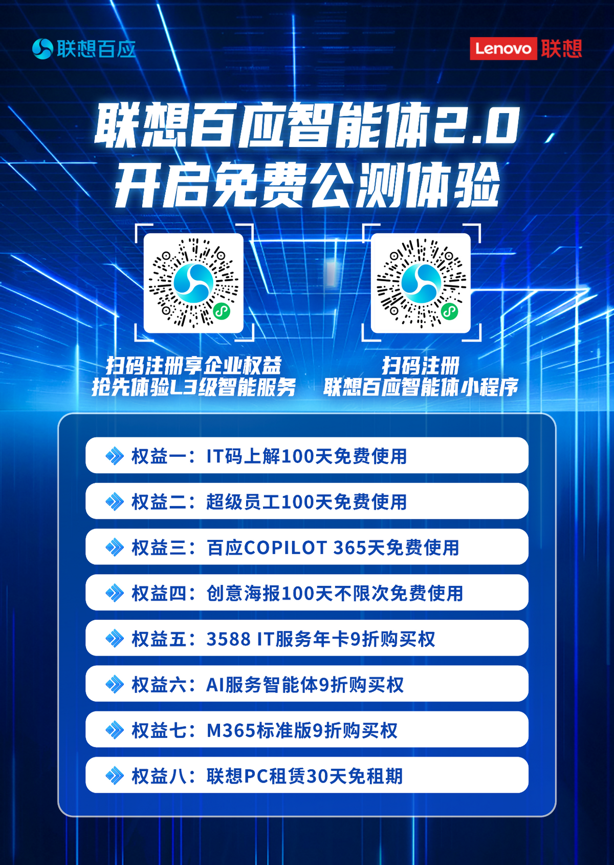 作为百应智能体2.0的首次亮相,即日起至9月1日,扫码完成注册即可抢先体验L3级智能体服务,企业用户同步享受8大权益,助力中小企业抢占智能化转型先机。