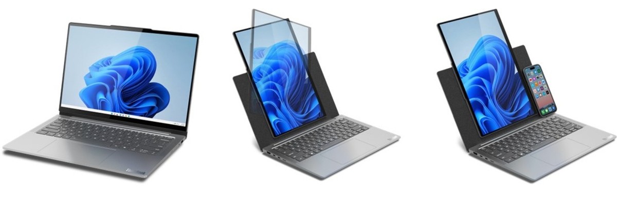 联想ThinkBook VertiFlex概念机是业内首款配备14英寸可旋转屏幕的笔记本电脑。17.9毫米厚度和1.39公斤重量,配备独有的旋转显示系统,支持传统水平和垂直方向之间的双模式切换。垂直显示模式是分屏多任务、显示代码和查看文档等场景更理想的选择。并且,在垂直显示模式下,智能手机可以通过联想超级互联(Smart Connect)无缝连接到PC上,用于传输文件和手机镜像。