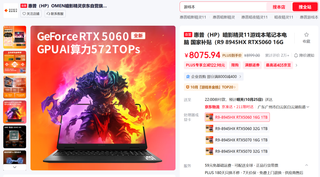 如果说暗影精灵11是性价比之选,那么暗影精灵MAX则代表着旗舰级的体验。它拥有更极致的性能释放和更精湛的模具工艺,这边推荐考虑一下RTX 5060版本,让你能以更亲民的价格,享受到旗舰系列的出色散热和高功耗显卡表现。对于追求一步到位、想要体验更纯粹高端游戏本的玩家来说,这无疑是一个极具诱惑力的选择。