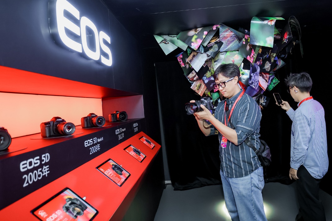 佳能EOS 5系数码相机齐聚现场,现场观众仿佛穿梭于影像技术的时光隧道