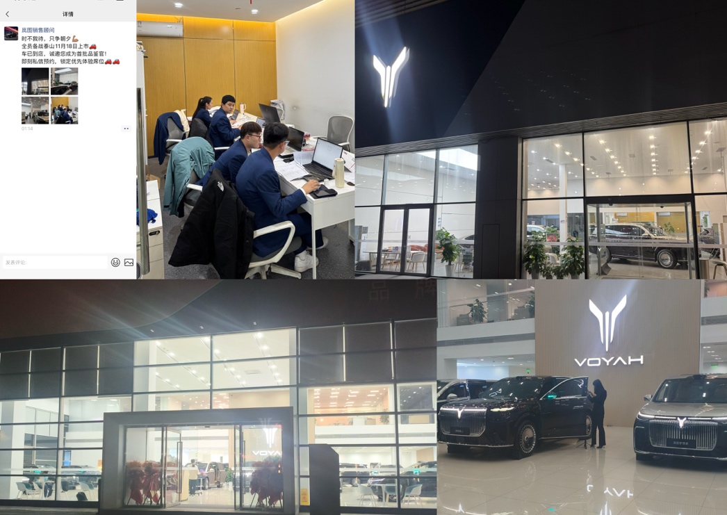 有销售就在朋友圈晒出灯火通明的店照片并配文:“全员备战泰山上市,车已到店,诚邀您成为首批品鉴官!”