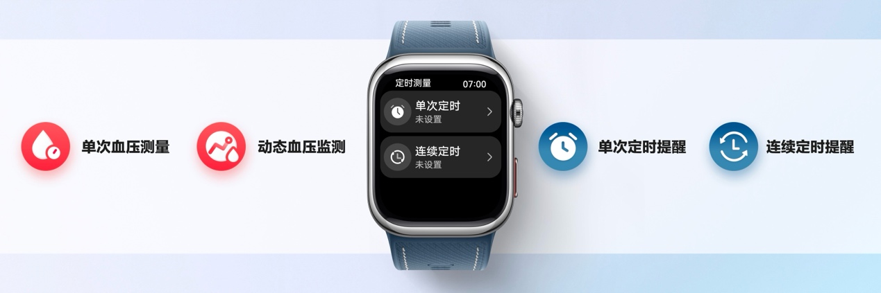 不论用户是站立、坐卧还是睡眠状态,都能随时随地进行精准测量。这使得用户可以轻松实现全天候、全场景的血压监测,将专业医院的动态监测能力延伸至院外,让高血压用户拥有了一位随身的“腕上血压专家”。