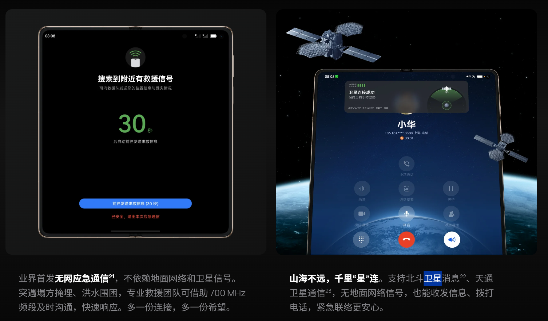 更值得信赖的是其领先的通信能力。在无地面网络信号的深山或海边,双向北斗卫星消息和天通卫星通信功能成为至关重要的生命线,让用户与外界的联系永不中断。而支持最长10天极限续航以及700Mhz无网应急通信,则是用户在极端环境下的“生命线”保障。