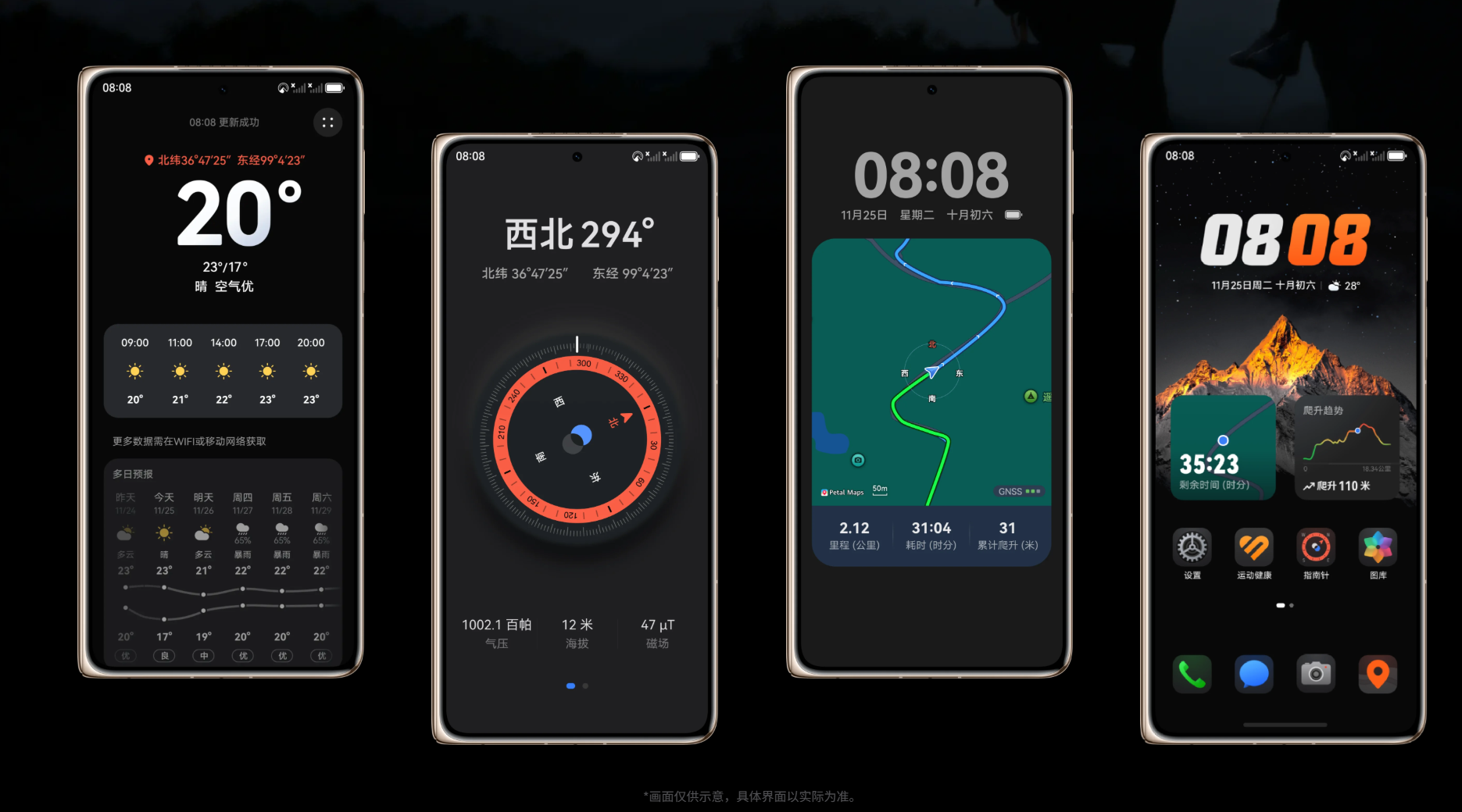 对于户外爱好者而言,华为Mate X7提供的是一份坚实可靠的“安全感”。其采用的超可靠折叠玄武架构,通过了严苛的跌落等测试,同时整机支持IP58+IP59防尘抗水,这意味着它无惧暴雨泼溅、尘土侵袭,甚至能承受高压、高温水流的冲击。无论是山林徒步时的意外落水,还是沙漠骑行中的沙暴天气,都能从容应对。