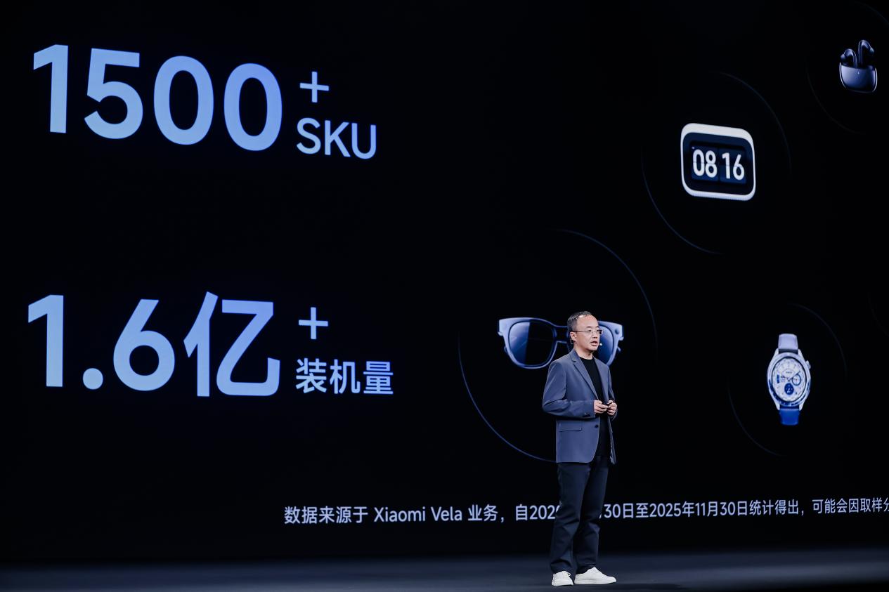 Xiaomi Vela被定义为小米人车家全生态里的“轻量系统底座”,也是AI硬件时代里那些尺寸更小、资源更受限设备的操作系统解法。大会上披露的数据显示,Xiaomi Vela 已经覆盖了超过1500款产品,装机设备超过1.6亿台,合作伙伴数量超过一百家,并开始进入车用 MCU 等对稳定性和安全性要求更高的领域。