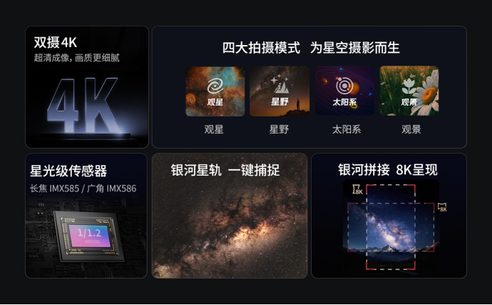 Seestar S30 Pro 采用广角与长焦双摄 4K 成像系统,以更高画质表现重新定义入门级智能天文望远镜的成像标准。新品搭载1/1.2英寸传感器,整体图像分辨率相比上一代产品提升至 4 倍,感光能力更强,噪点控制更优,能够呈现更加清晰、纯净的星空画面。在光学配置方面,Seestar S30 Pro 采用4片专业复消色差镜片,有效减少色差。同时,产品内置三重滤镜系统,抑光更纯净。针对复杂多变的环境,S30 Pro 还加入了镜头除雾功能,确保在不同天气条件下都能稳定、清晰地捕捉观测目标。