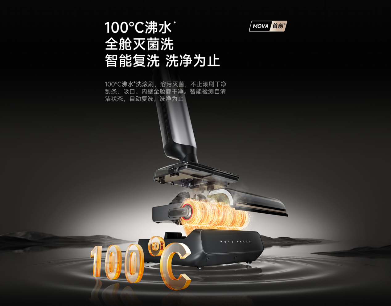 而MOVA推出的M50 Ultra的升级点很“简单粗暴”,不再跟你重点聊“清洁能力”,而是围绕“减负”做了一系列升级优化。从它主打的双机械臂、折叠伸缩臂、100°C 沸水自清洁、AI智能助力、12 道 360°除菌这些关键词,就能看出 MOVA 想解决的,基本都是洗地机用户每天会真实遇到的麻烦。