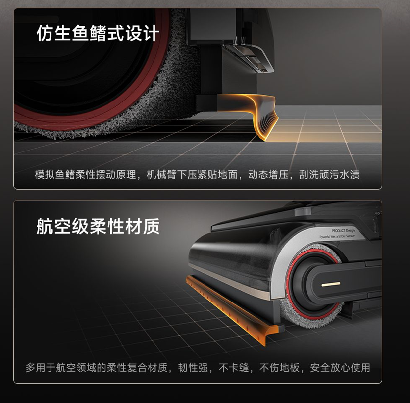 而且这个机械臂并非MOVA单纯炫技,而是利用机械臂去优化洗地机的全套清洁流程,把吸 + 洗 + 刮三件事拆开做,更接近传统拖地的逻辑——先把脏东西“处理松动”,再彻底带走。