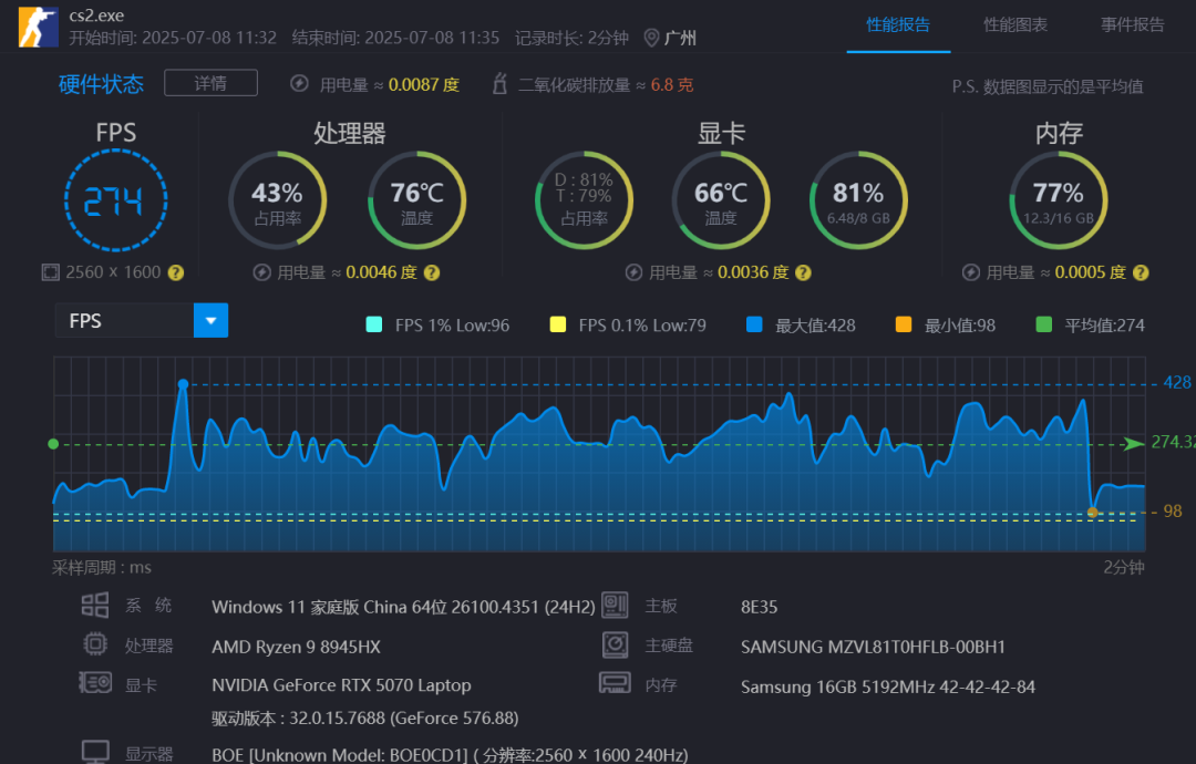 而在系统层面,暗影精灵11还拥有独家的AI智能调优OMEN AI,软件会自动识别你是在玩《CS2》这种吃CPU的网游,还是《PUBG》这种更吃GPU的游戏,从而智能分配功耗、调整各个系统参数,让帧数得到显著提升。