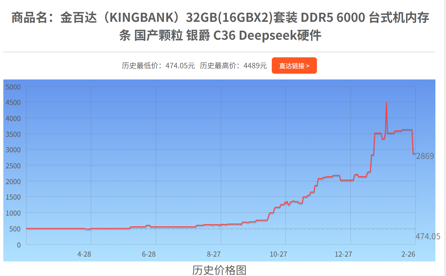 或许有的小伙伴不知道这个价格意味着什么。让我们把时间倒回到一年多前,就在2024年的12月,这款采用同款国产颗粒的内存价格是多少?