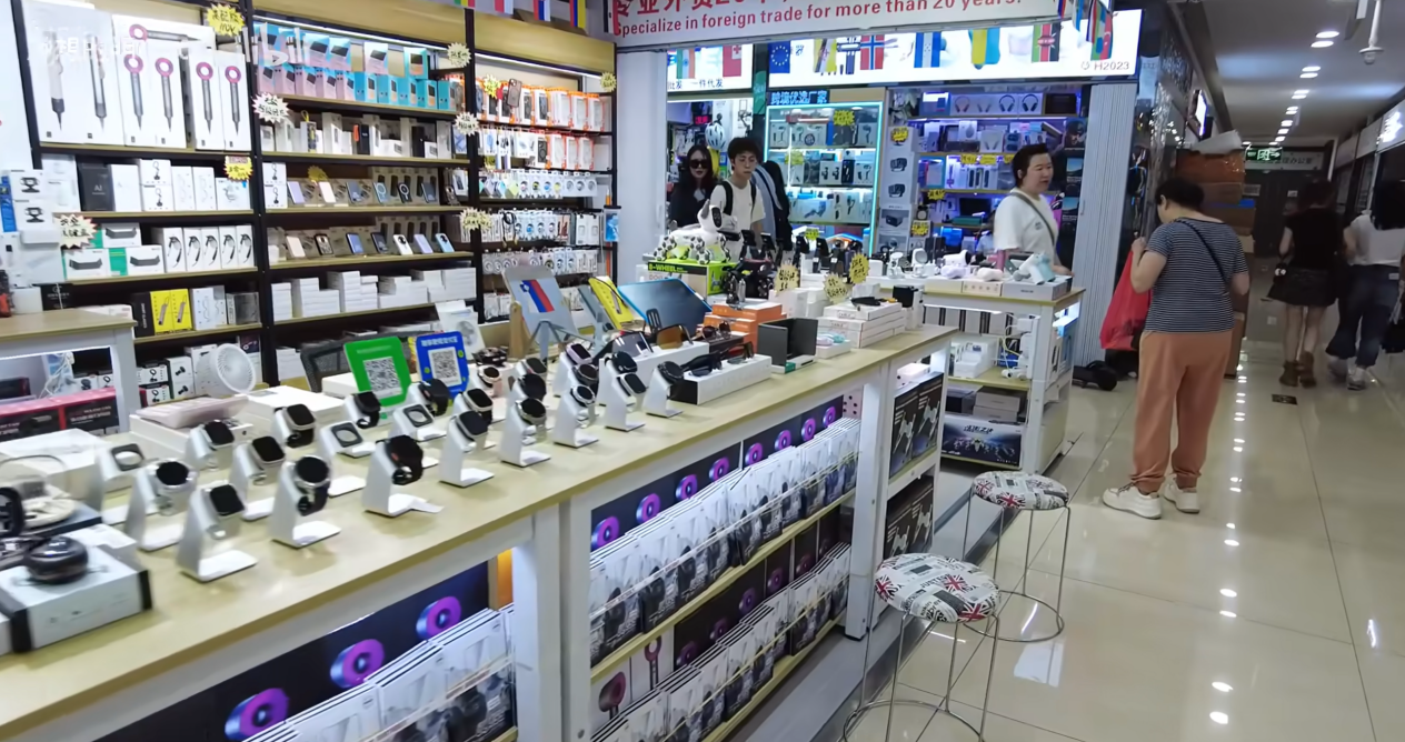 在一些其他档口,也有如小米、华为、大疆这样的品牌店铺存在。但是毫无意外的是,这些产品的旗舰店和在国内每一家能看到的旗舰店里都一样,同样的价格,同样的品质。