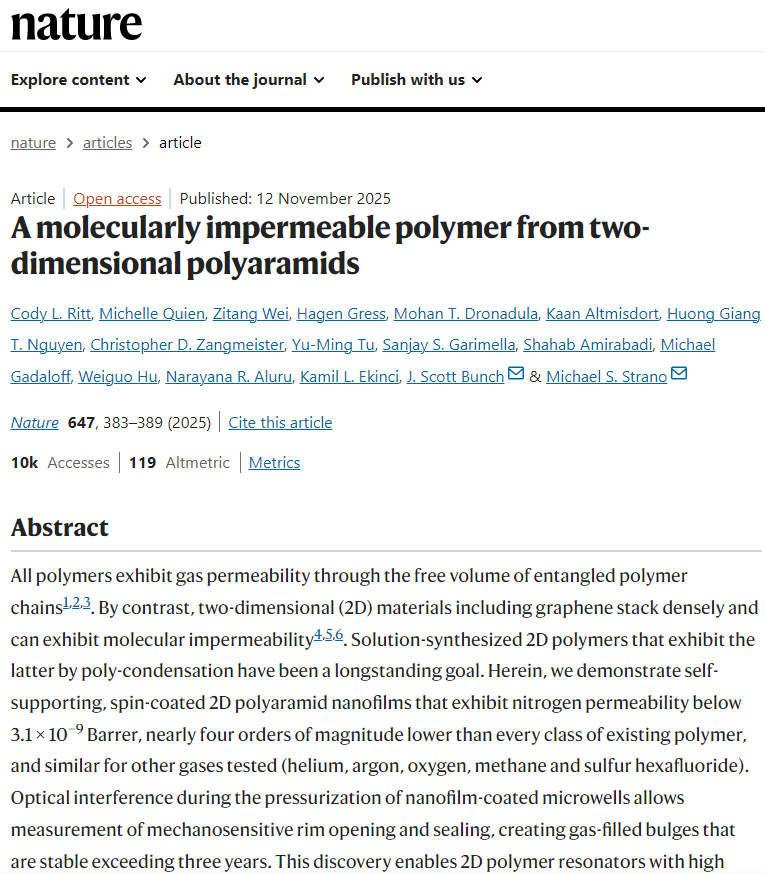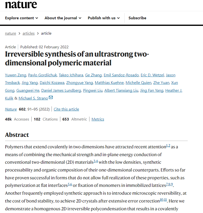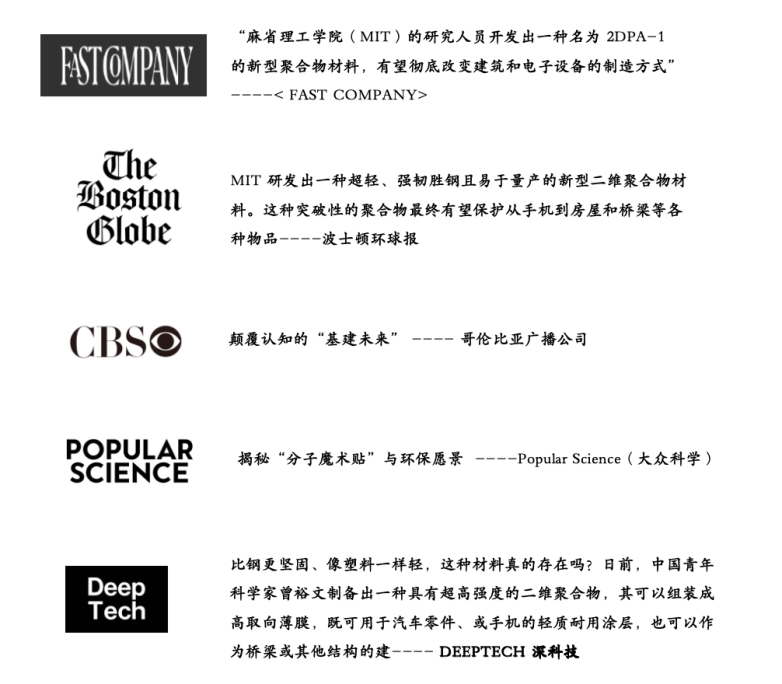 2022年和2025年,相关成果连续发表在《Nature》正刊上,MIT的Michael S. Strano教授给出的评价是:“划时代的影响力”。多家知名外媒将该材料誉为“颠覆认知的的‘基建未来’”。