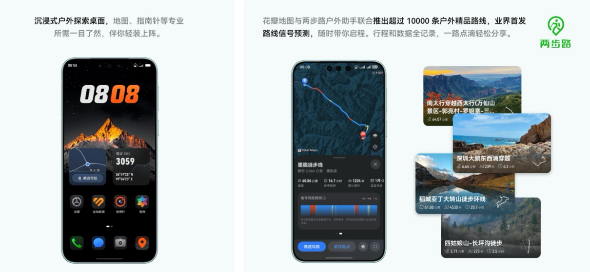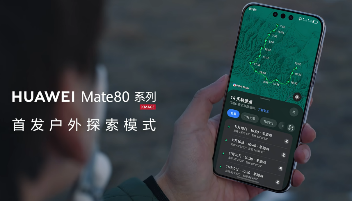 超长续航只是华为Mate 80系列“户外神技”的一环。开启户外探索模式后,用户可在花瓣地图上随时查看线路与信号状况,提前预判风险;熄屏状态下,手机能自动追踪行程轨迹;一旦不慎进入无网区域,还能通过天通卫星通信与北斗卫星消息与外界取得联系。凭借以上多项硬核功能,发售至今,华为Mate 80系列已成为越来越多户外探索爱好者的必备装备。