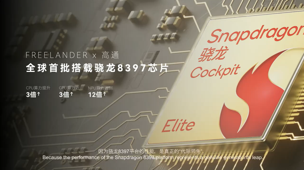 3月31日,FREELANDER神行者品牌全球首秀发布会在上海举行,宣布其首款新车CONCEPT 97将全球首批采用骁龙座舱平台至尊版(骁龙8397),以科技重塑豪华,开启智能出行的全新篇章。FREELANDER神行者是奇瑞与捷豹路虎携手打造的拥有豪华底蕴的新能源科技品牌。从“经典传承”到“体验重塑”,FREELANDER神行者在豪华进化之路上,选择了骁龙座舱平台至尊版作为技术底座。该平台凭借充沛的端侧AI算力和强大的图形渲染能力,为FREELANDER神行者打造豪华科技全地形SUV提供了坚实支撑,也让“智能”真正成为豪华的一部分。