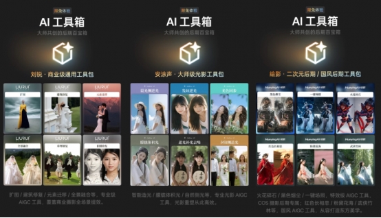 像素蛋糕9.0通过与行业顶尖大师刘锐、安涂声、绘影等深度合作,将专业级AIGC能力直接封装成为简单易用的“AI工具箱”,让每个有创作欲望的人都能够实现曾经只有“后期技术大师”才能完成的效果。包含了商业级的各类图像修复、大师级的光影塑造,以及二次元与国风的风格化创作。过去,这样的能力需要修图师自己部署复杂的ComfyUI工作流,学习成本高、设备要求高、上手门槛高。而现在,像素蛋糕通过整合各类后期能力,为用户降低AIGC效果的使用门槛、实现客片交付级的效果。这些出色的大师级后期能力被装进像素蛋糕,让更多用户真正可以实现点一下即出图,让每个人都能成为自己生活中的视觉大师。