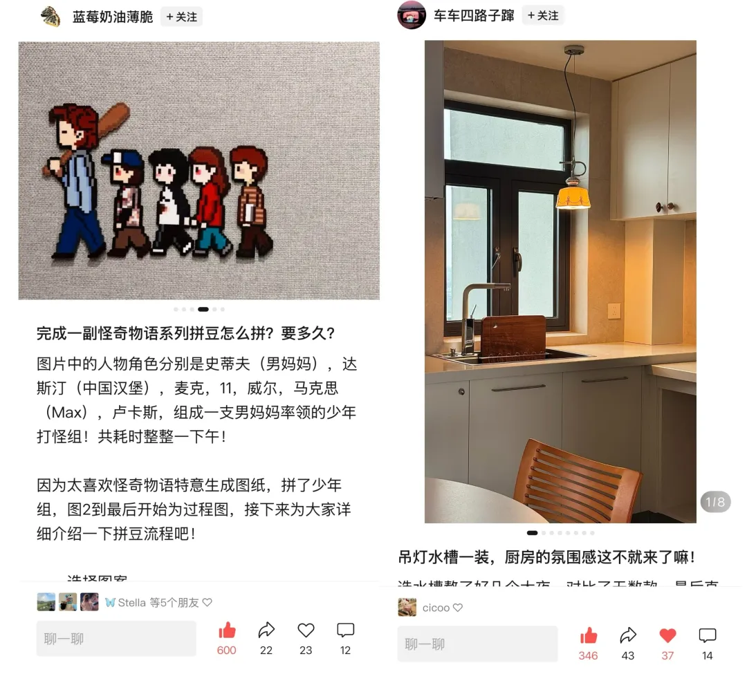 你看在问一问社区里,最近有很多人,满心喜悦地晒出自己的拼豆图纸,几乎每条内容,都有大量同好跟图回应;还有很多人,喜欢晒出自己的极简生活风,通过最简单实用的家居装饰、电子设备,来构建对生活的理解。