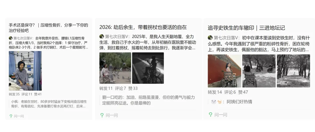 她只是平淡地分享着日常,说着出门的不便,康复的历程,以及哪些康复设备不太好用。