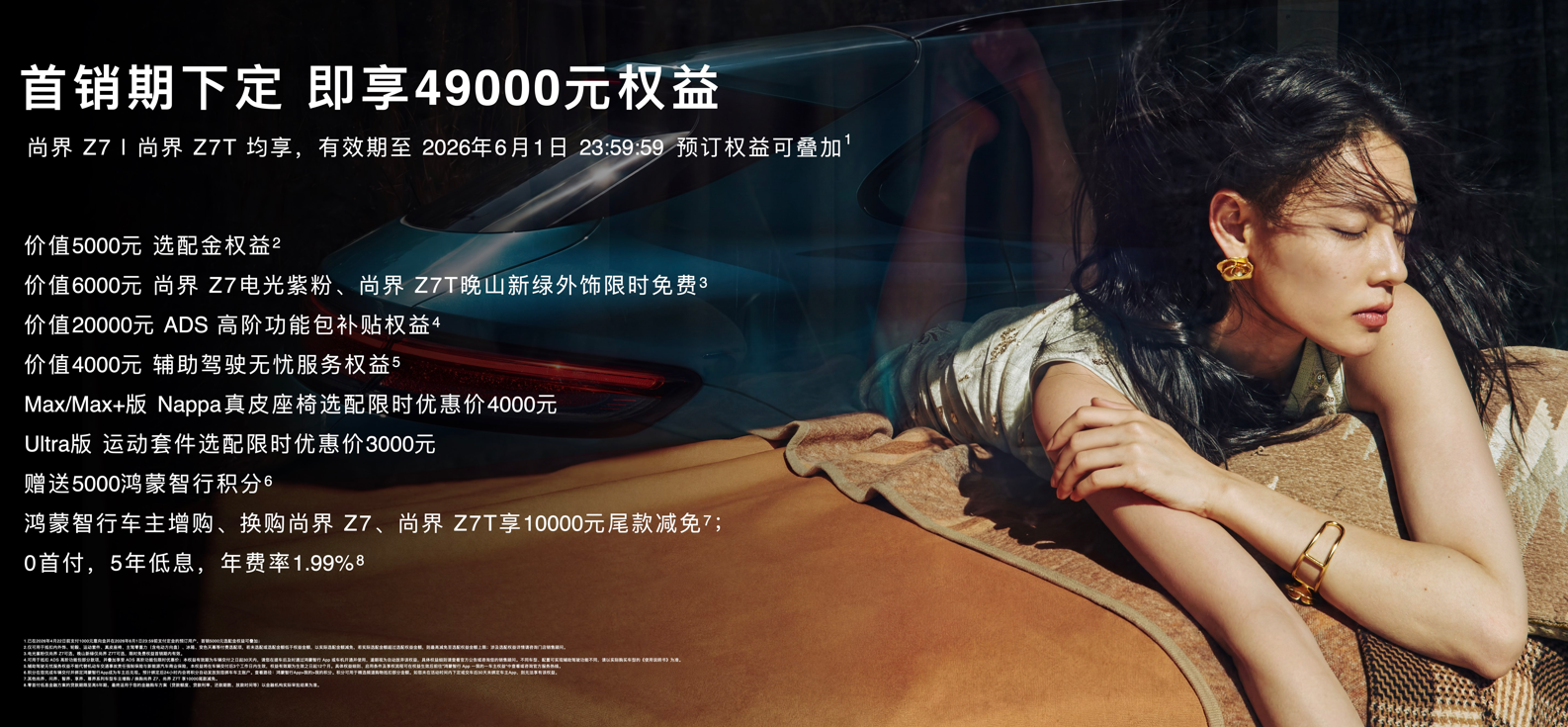 在价格方面,尚界Z7与尚界Z7T展现出了极高的性价比。尚界Z7售价21.98万起,尚界Z7T售价22.98万起,让更多年轻人能够轻松触及智慧出行。在首销期下定,消费者即可畅享高达49000元的丰厚权益,这无疑是一份极具诱惑力的“大礼包”,进一步增强了产品的吸引力。