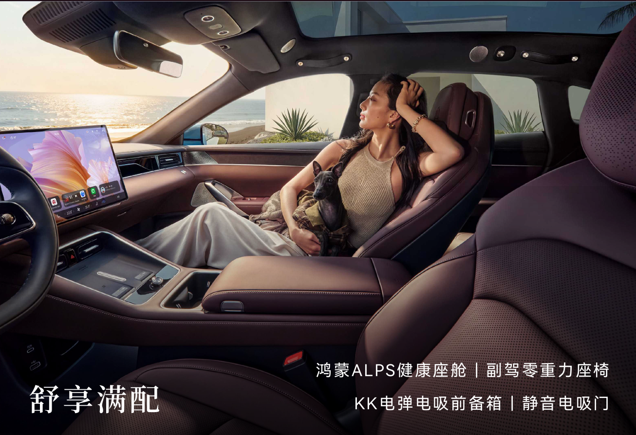 舒享满配,全系标配的鸿蒙ALPS健康座舱就像一个天然的空气净化器,为你营造出一个清新、健康的驾乘环境。副驾零重力座椅则如同一位贴心的按摩师,能够根据你的身体曲线自动调节,为你提供最贴合、最舒适的支撑,忘却一切疲惫。KK电弹电吸前备箱和静音电吸门的设计,不仅在操作上便捷无比,更在细节处彰显了豪华与品质,每一次开关门都成为一种享受。