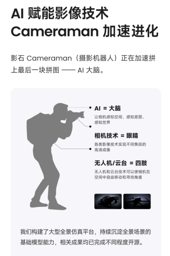 刘靖康表示,2025年是影石成立以来“能力增长最快、最全面的一年”。他还首次阐明,公司长期技术愿景是打造媲美专业摄影师的全自动“摄影机器人”。过去6年,公司已在相机硬件、影像算法、无人机与云台等机器人的“躯体能力”上完成积累,未来将重点投入AI算法与定制芯片研发,加速补齐“AI大脑”。