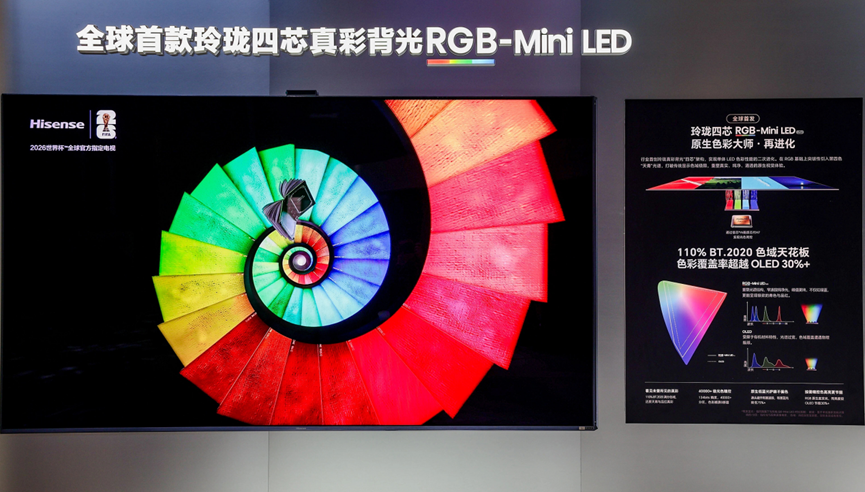 报告期内,公司推出UX 2026款RGB-Mini LED新产品,通过搭载全球首创的玲珑4芯真彩背光技术,打破行业技术瓶颈,将高端电视视觉体验拉升至专业监视器水平。根据奥维云网数据,2026年一季度,国内RGB-Mini LED电视月均销量达到2025年3月至12月月均销量的3倍以上,其中,海信以79.4%的销量份额强势领跑。随着4月搭载RGB-Mini LED技术小墨E5S系列新品的上市,公司已经构建覆盖中高端市场的完整RGB-Mini LED产品矩阵。